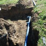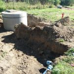 - budowę sieci kanalizacji sanitarnej tłocznej z rur PE100 PN10 SDR17 D=110/6,6mm, długości 12,00 m, budowę tłoczni ścieków DN2500 o przepustowości Qp = 22m3/h, Hp=5,15m – 1kpl.